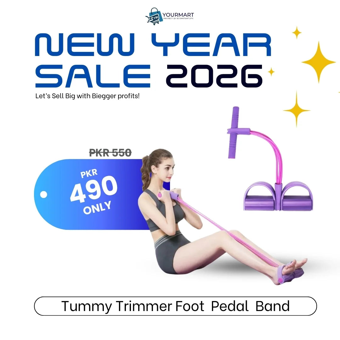 Tummy Trimmer | Foot Pedal Resistance Band | Elastic Sit-Up Pull Rope | Fitness & Yoga Trainer | Random Colors